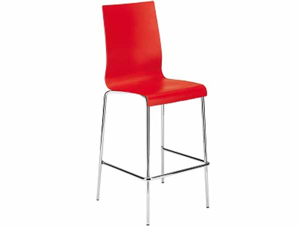 İstiflenebilir bar sandalyesi; polipropilen gövde, krom veya gri boyalı ayaktan imal edilmiştir. UV korumalıdır. Antistatik özellik taşır.